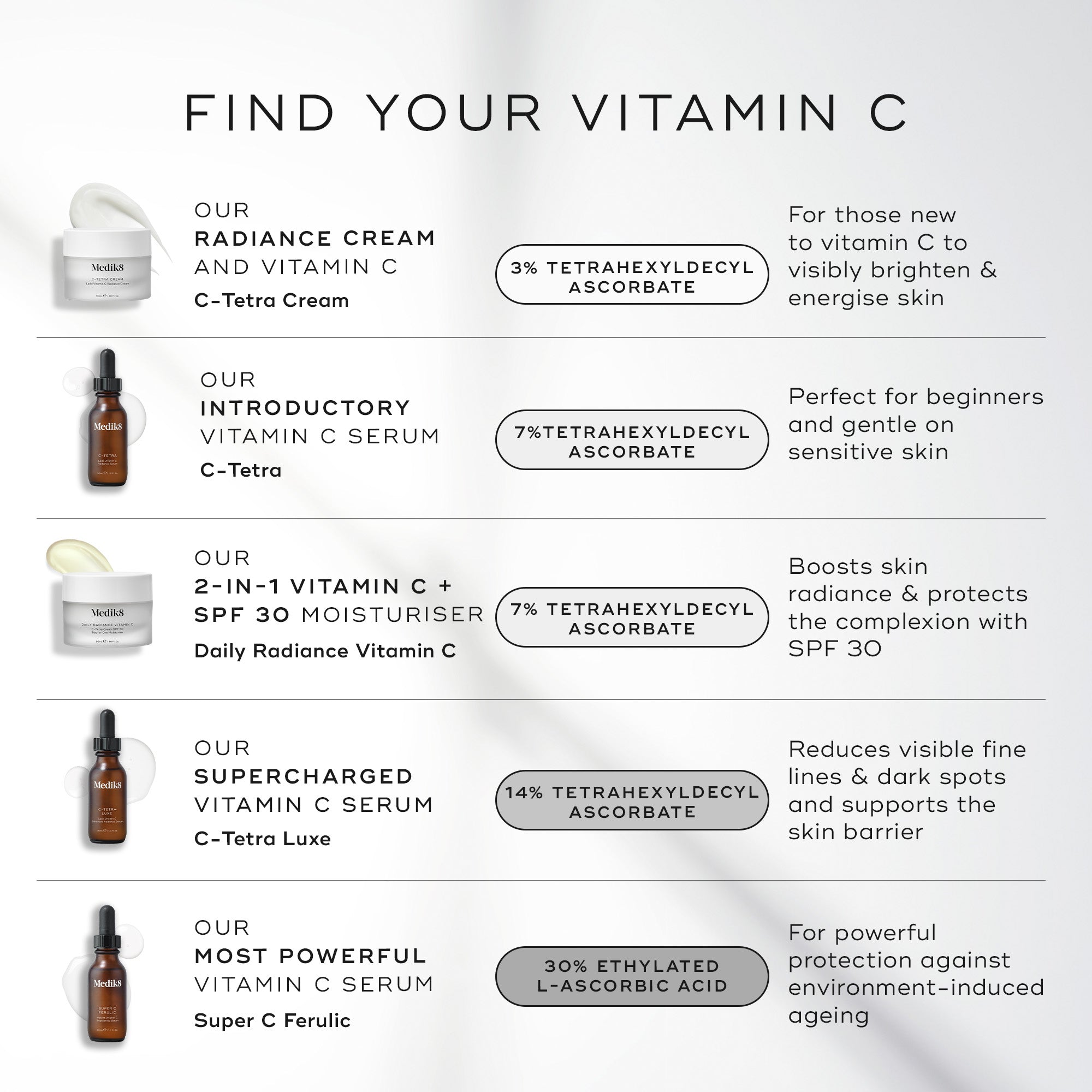 Bij Medik8 hebben we een vitamine C die past bij elk huidtype en elke levensstijl - van voedende crèmes en krachtige serums tot SPF-hybride formules.